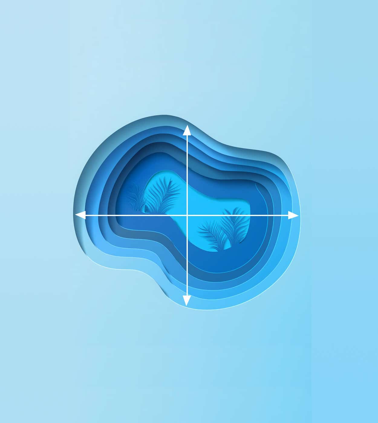 - Rechthoekige vijver: Meet de lengte en breedte aan de bovenzijde en de gemiddelde diepte in het diepste punt.