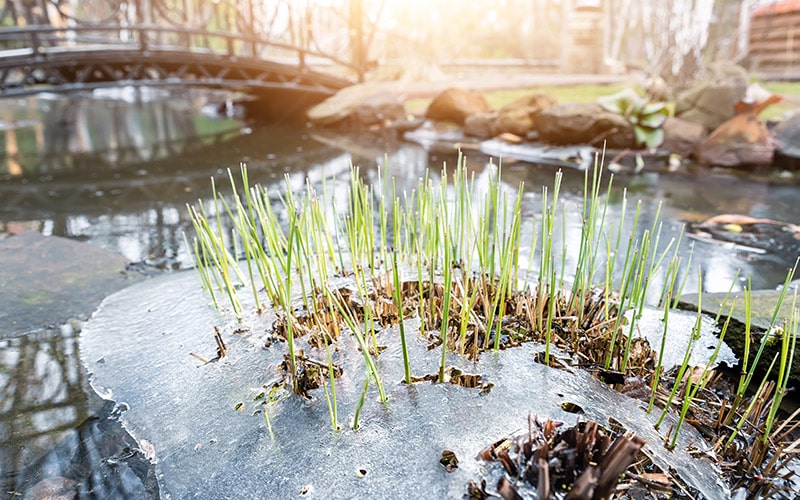 - Zorg dat de vijver niet volledig dichtvriest door een ijsvrijhouder of beluchtingspomp te gebruiken.